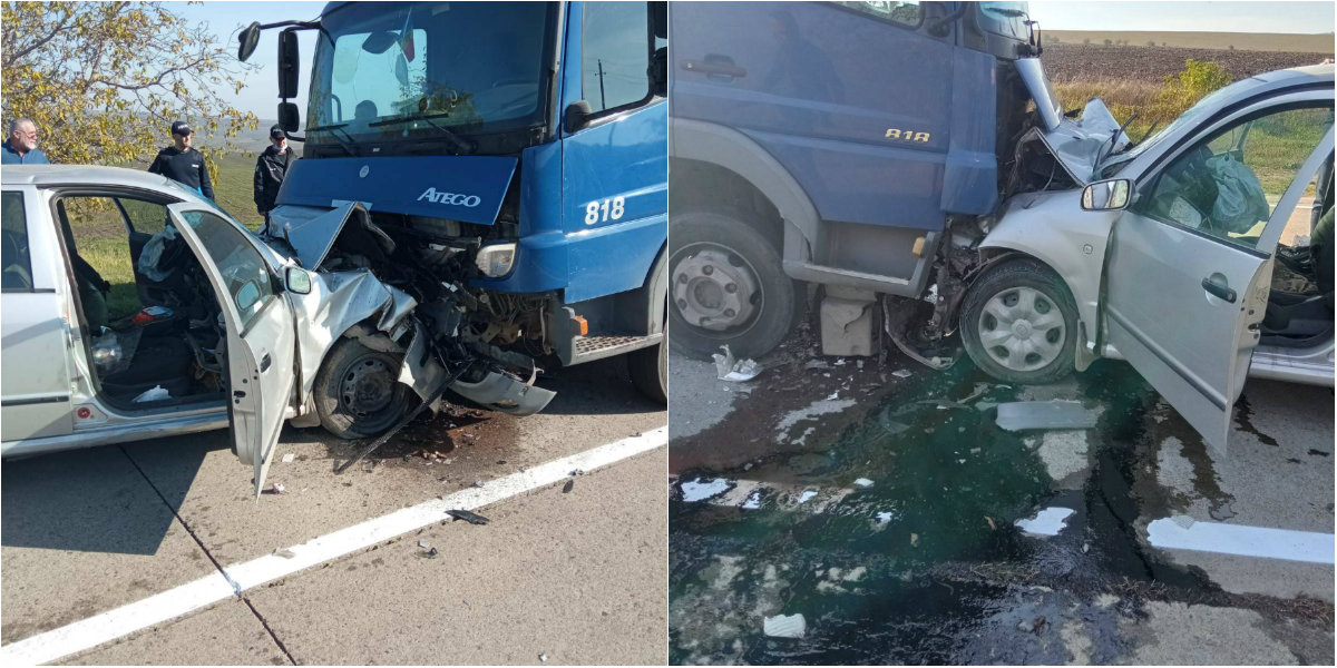 Accident violent la Sîngerei. Două persoane au fost transportate de urgență la spital după ce un camion și o Skoda s-au tamponat