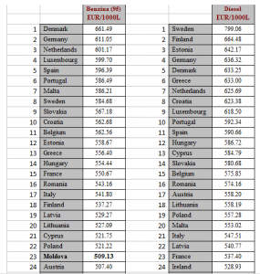 Astfel notăm ca prețurile la produsele petroliere în Republica Moldova sunt printre cele mai mici în Europa, iar țările care afișează prețuri mai mici, dispun de rafinării, pe când Republica Moldova importă 100% din carburanți. Autorii analizei susțin că prețul produselor petroliere în România, sursa principală de import este mult mai sus în clasamentul prețurilor în Europa.