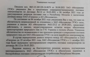 În cazul în care această chestiune nu va fi rezolvată până pe 10 octombrie, centrala va reduce livrările de energie, în conformitate cu înțelegerea din 30 martie 2021.