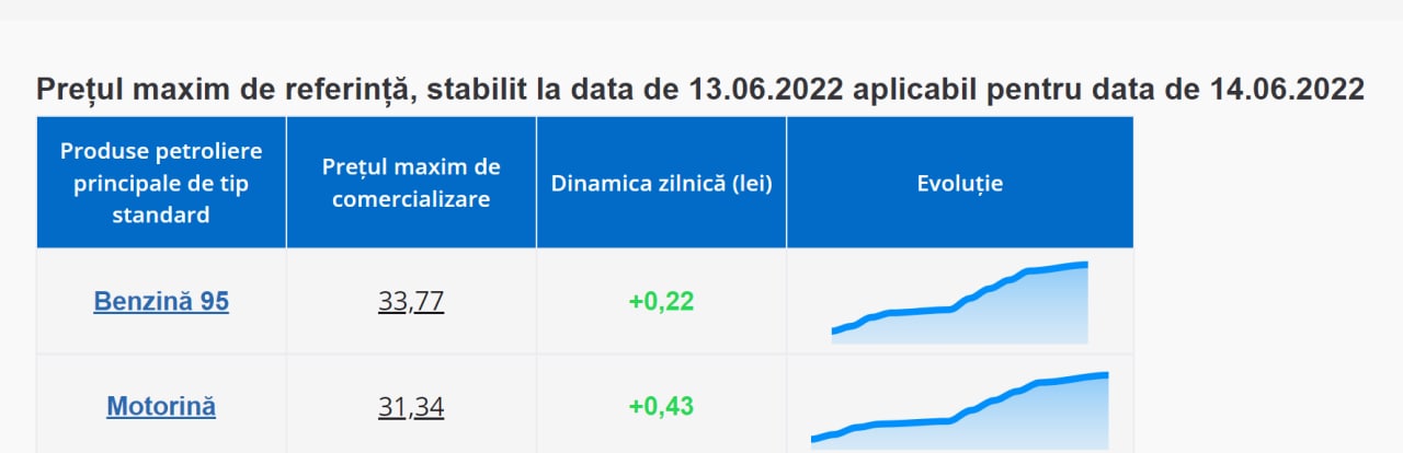 Precizăm că Parlamentul a decis că ANRE va stabili prețurile maxime de comercializare cu amănuntul a produselor petroliere principale de tip standard în fiecare zi lucrătoare. Acestea vor fi valabile cu începere de la ora 00:01 pentru ziua/zilele următoare celei/celora în care au fost stabilite.