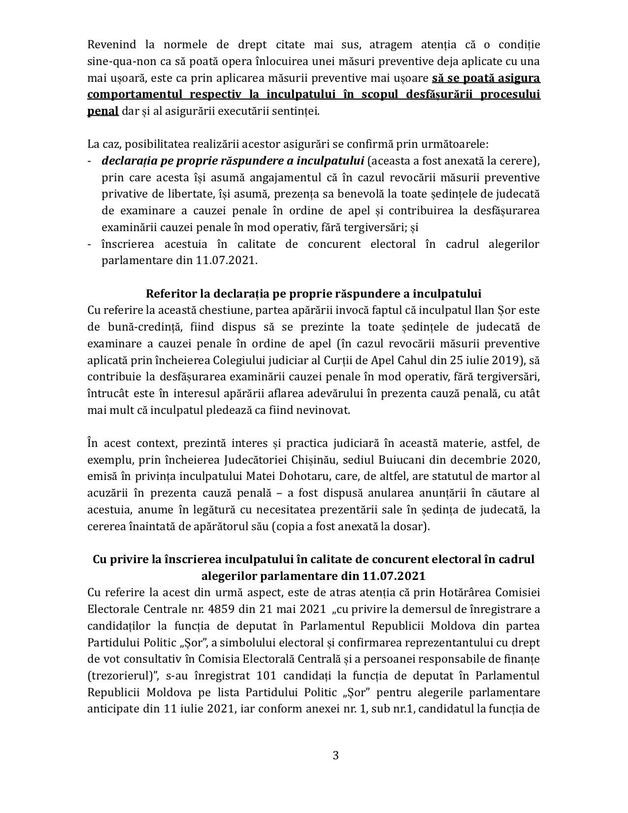 „Public recursul pe care avocații mei l-au depus la Curtea Supremă de Justiție. Insistăm să fie examinat în regim de urgență, adică astăzi. Dacă CSJ va anula mandatul ilegal de arestare emis pe numele meu, chiar astăzi voi depune depoziții la Procuratură și voi povesti adevărul despre furtul miliardului. Asta, bineînțeles, dacă măcar cineva este interesat ca adevărul să iasă la iveală. Așteptăm decizia CSJ”, a mai scris Ilan Șor pe Facebook.