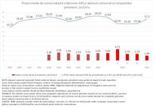 Din datele oficiale furnizate de ANRE deducem că adaosul comercial în primul trimestru aplicat la benzina 95 a fost de 1,99 lei/litru, valoare minimă din ultimii 7 ani.