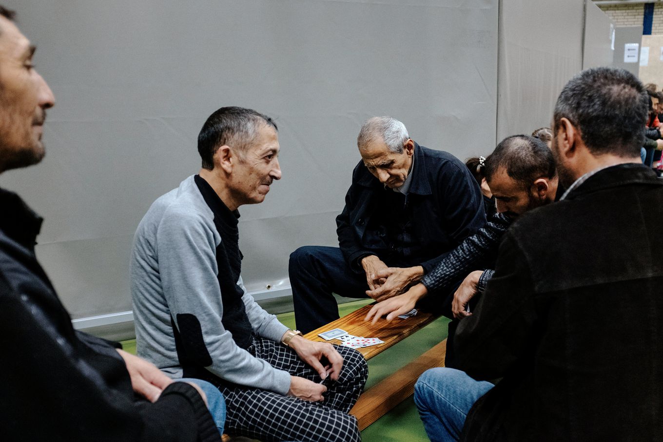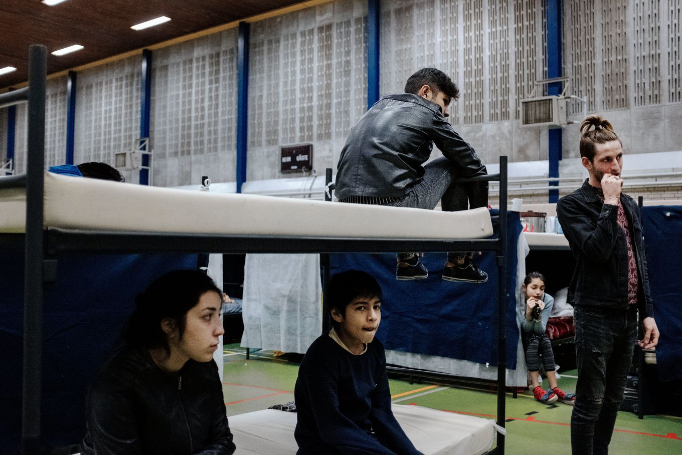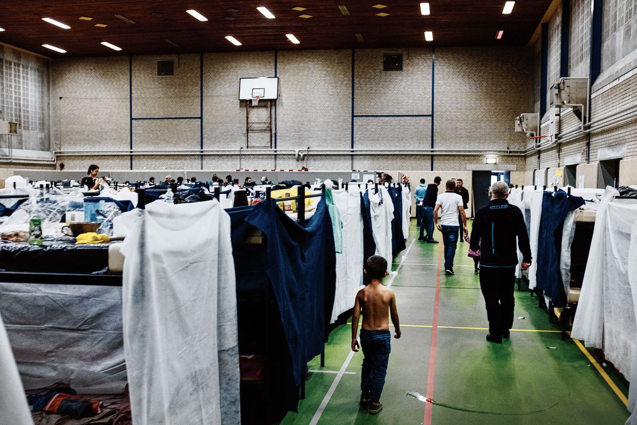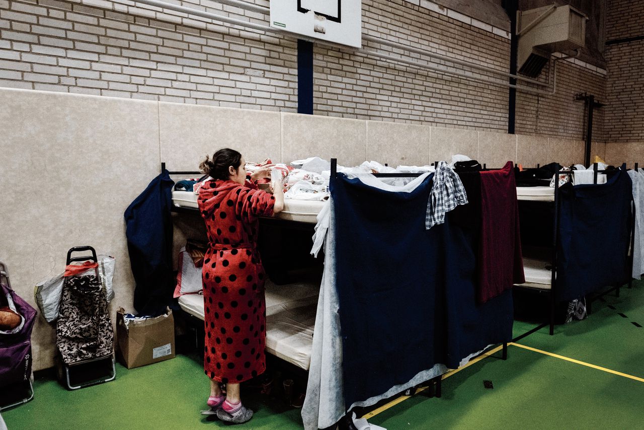 Zeci de moldoveni plecați la muncă se adăpostesc într-o sală de gimnastică pusă la dispoziție de Centrul solicitanților de azil din Budel, Brabant. Aici este „acasă” pentru ei. Paturile supraetajate din oțel sunt așezate cap la cap, iar intimitatea se rezumă la o lenjerie de unică folosință, primită la sosire, cu care încearcă să-și acopere paturile.