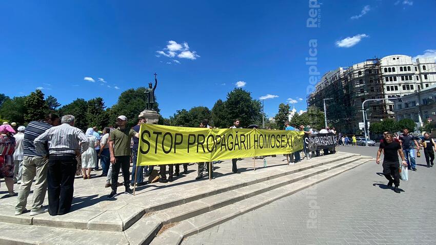 Oamenii au organizat un contraprotest față de marșul „Moldova Pride 2022”, desfășurat de comunitatea LGBT din Republica Moldova.
