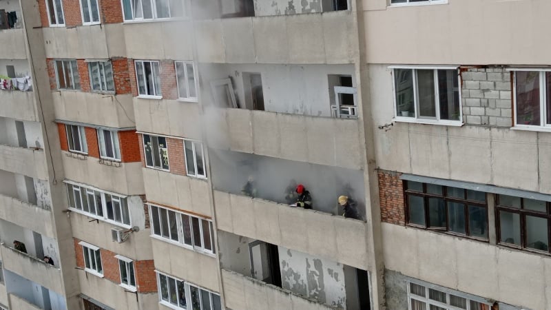 foto | Fum dens, observat duminică la balconul unui apartament de la Ciocana. Cinci echipaje de pompieri au luptat cu incendiul