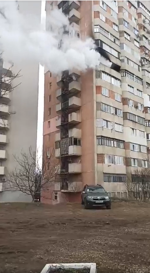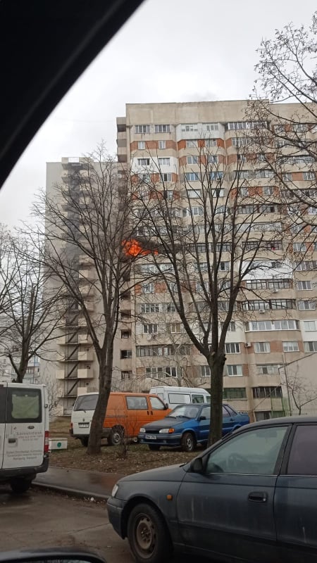 Arderea s-a produs pe str. M. Sadoveanu. La fața locului au intervenit cinci echipaje de pompieri, care au stabilit că incendiul a izbucnit la etajul nouă al unui bloc.