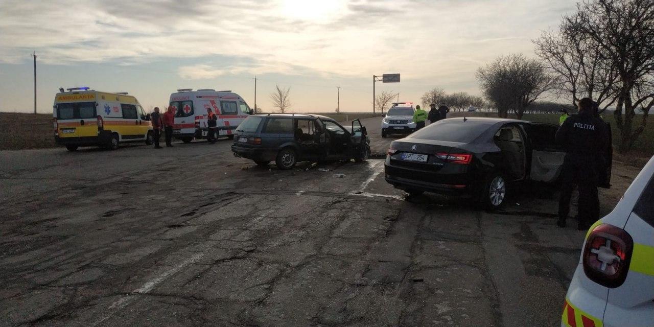 foto | Mai multe persoane au fost preluate de ambulanță după ce două mașini au fost făcute zob în apropiere de Cahul