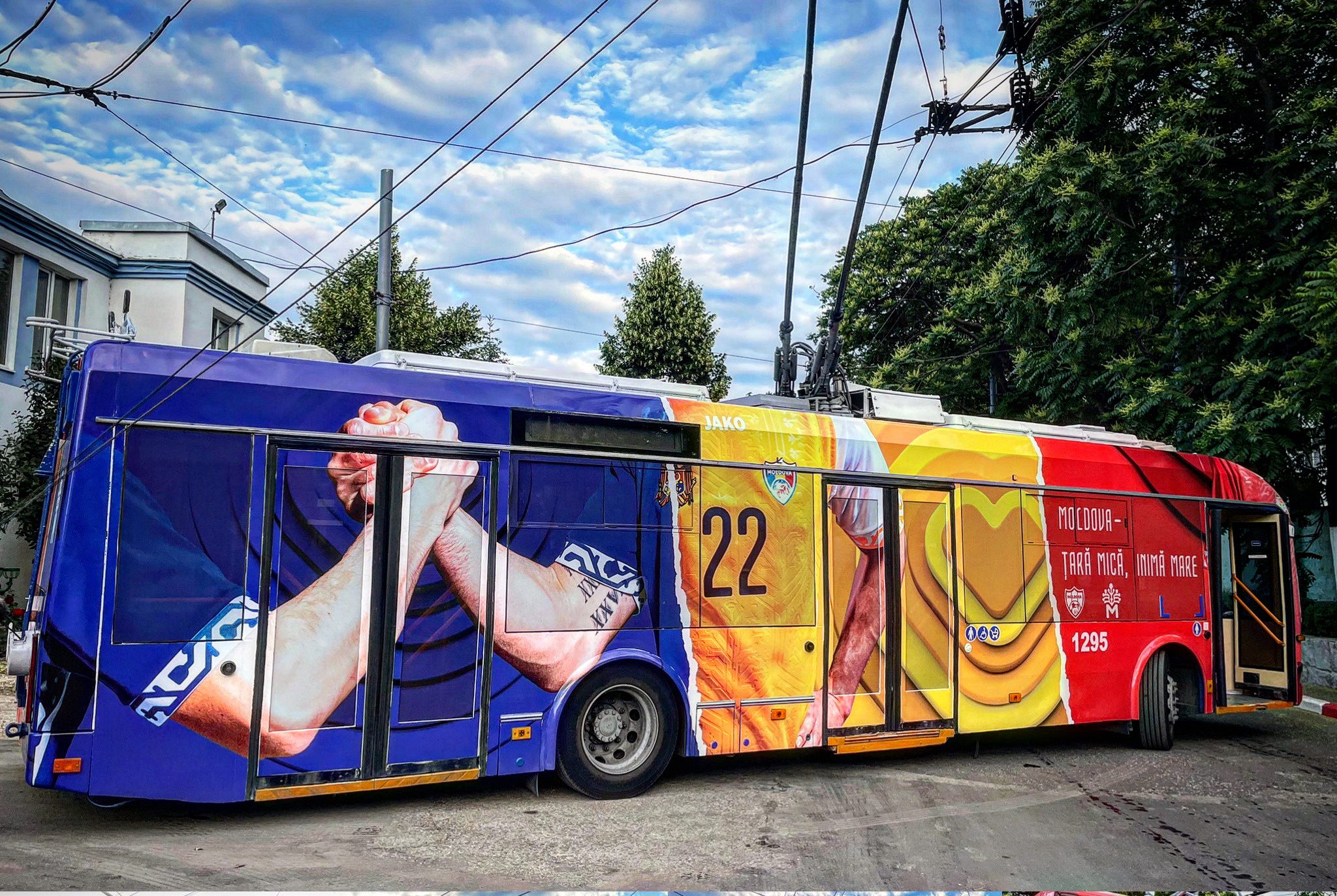 foto | Noua armură a echipei naționale de fotbal, aplicată pe un troleibuz din capitală. Pe care rută poate fi văzut