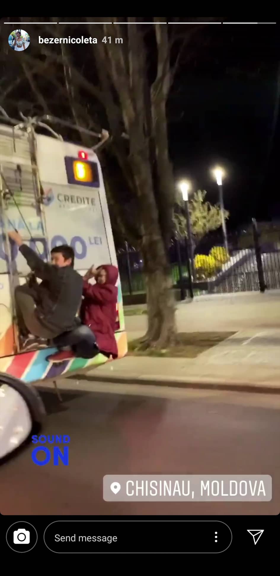 Fiind „însetați de adrenalină”, doi tineri din capitală au decis aseară să facă o călătorie cu troleibuzul. Însă, nu una obișnuită, ci atârnând de scările din spatele unității de transport.