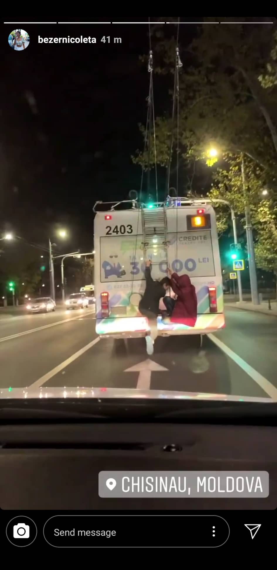 foto | O călătorie cu troleibuzul te costă doi lei sau… părul ciufulit și un strop de adrenalină. Aventura „aeriană” a unor tineri din capitală