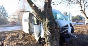 foto | Șoferul unui microbuz a ajuns la spital după ce s-a izbit cu mașina de un copac