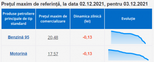 Agenția Națională pentru Reglementare în Energetică (ANRE) a anunțat joi, 2 decembrie, noile prețuri maxime de comercializare pentru litrul de motorină și benzină în Republica Moldova.