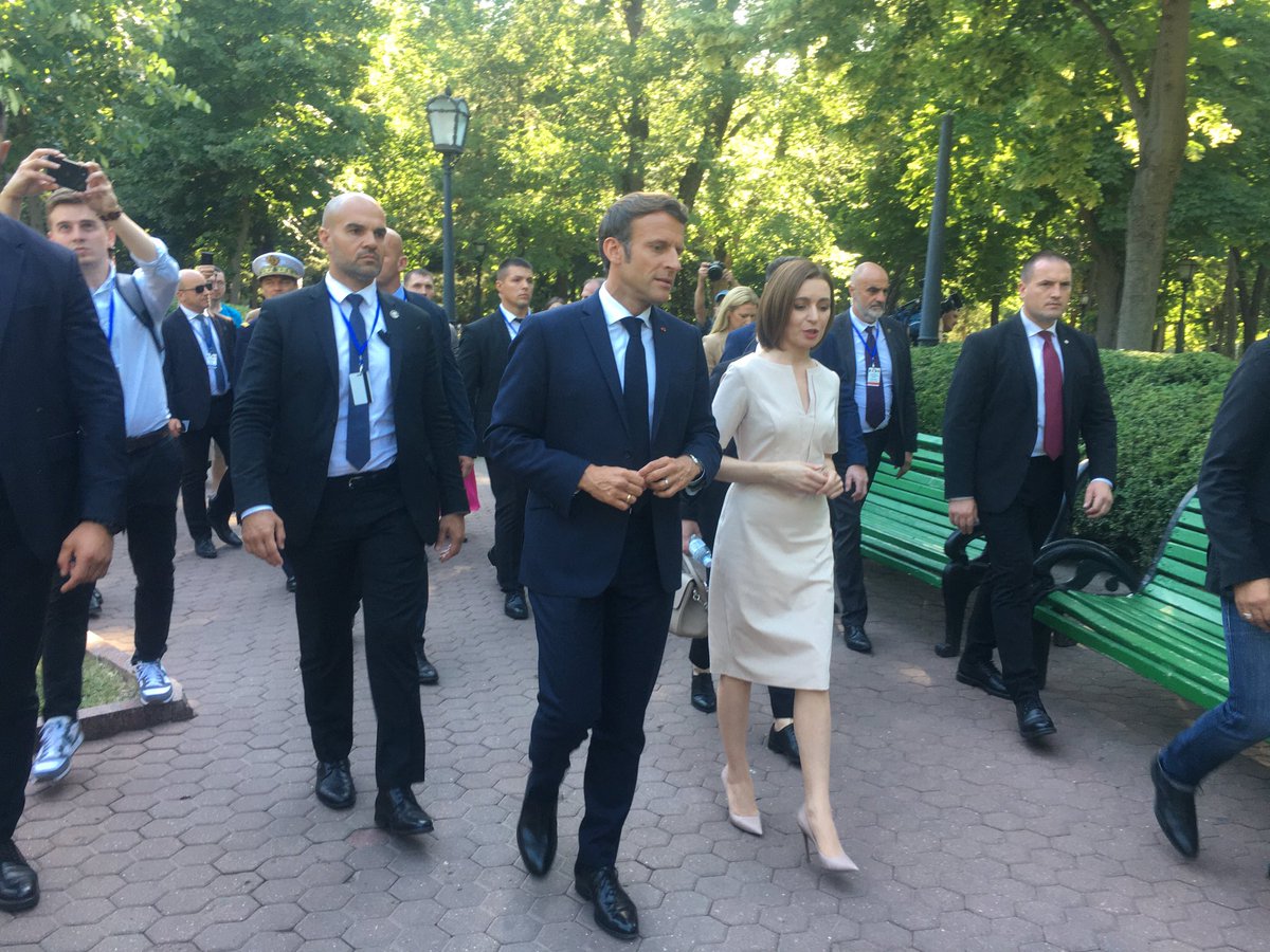 În imagini poate fi observat cum șefii de stat au făcut o plimbare prin Grădina Publică „Ștefan cel Mare și Sfînt”. De asemenea, au trecut prin preajma unei cafenele în aer liber cu specific francez.