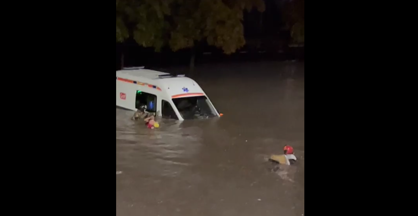 Zeci de mașini au fost inundate aici, iar șuvoaiele au surprins inclusiv o ambulanță.