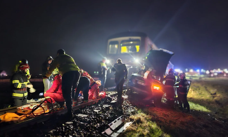 video | Mașină cu numere de R. Moldova, spulberată de tren lângă Iași: O femeie a decedat, iar un copil și un bărbat au ajuns la spital