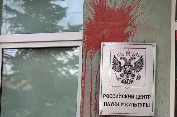 Persoane necunoscute au vandalizat cu vopsea roșie Centrul Rus de Știință și Cultură din Chișinău. Imaginile de la fața locului…