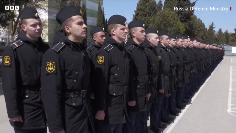 Ministerul rus al Apărării a publicat imagini care arată zeci de bărbați îmbrăcați în uniforme de Marină, despre care a…