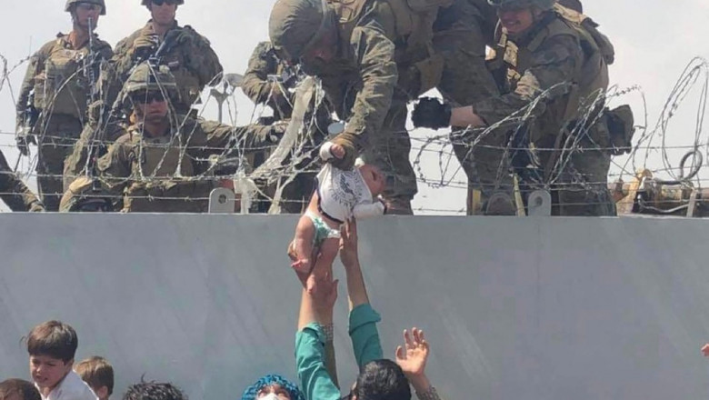 Un bebeluș dat unui soldat peste zidul aeroportului în haosul evacuării americane din Afganistan, în 19 august, a fost găsit…