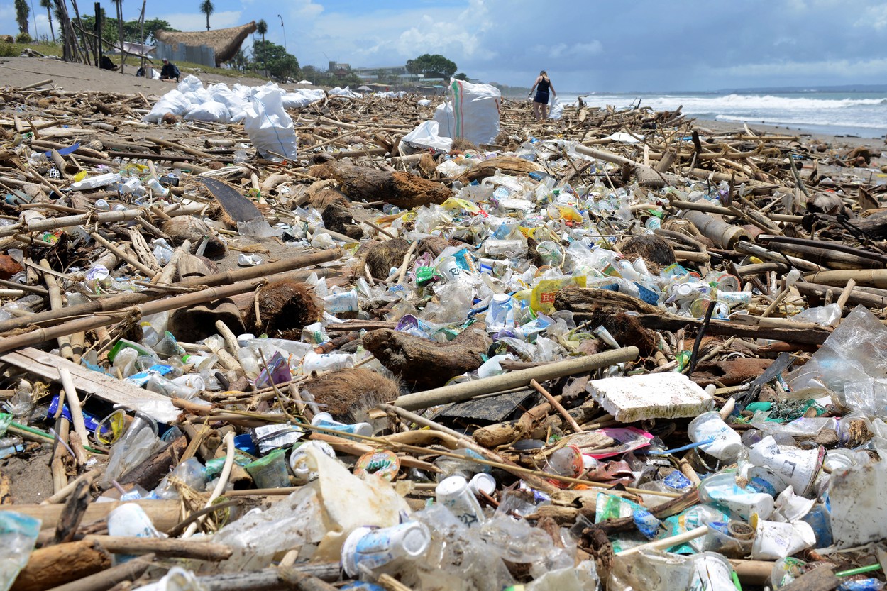 Tone de gunoaie, cele mai multe din plastic, au ajuns pe plajele din Bali. Localnicii încearcă să strângă deșeurile, iar…