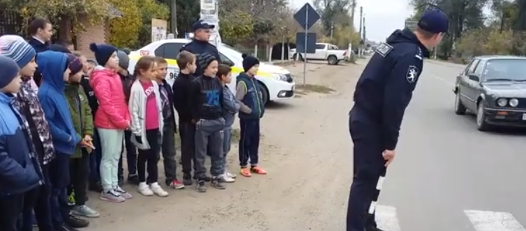 Un polițist care le explica copiilor cum să traverseze strada era cât pe ce să fie tamponat. Imaginile cu inspectorul…