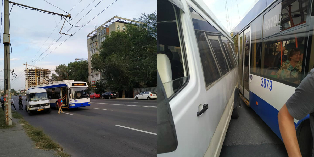 Un troleibuz, care circula pe ruta nr.13 și un microbuz nu au putut împărți drumul din apropierea Complexului Memorial Eternitate…