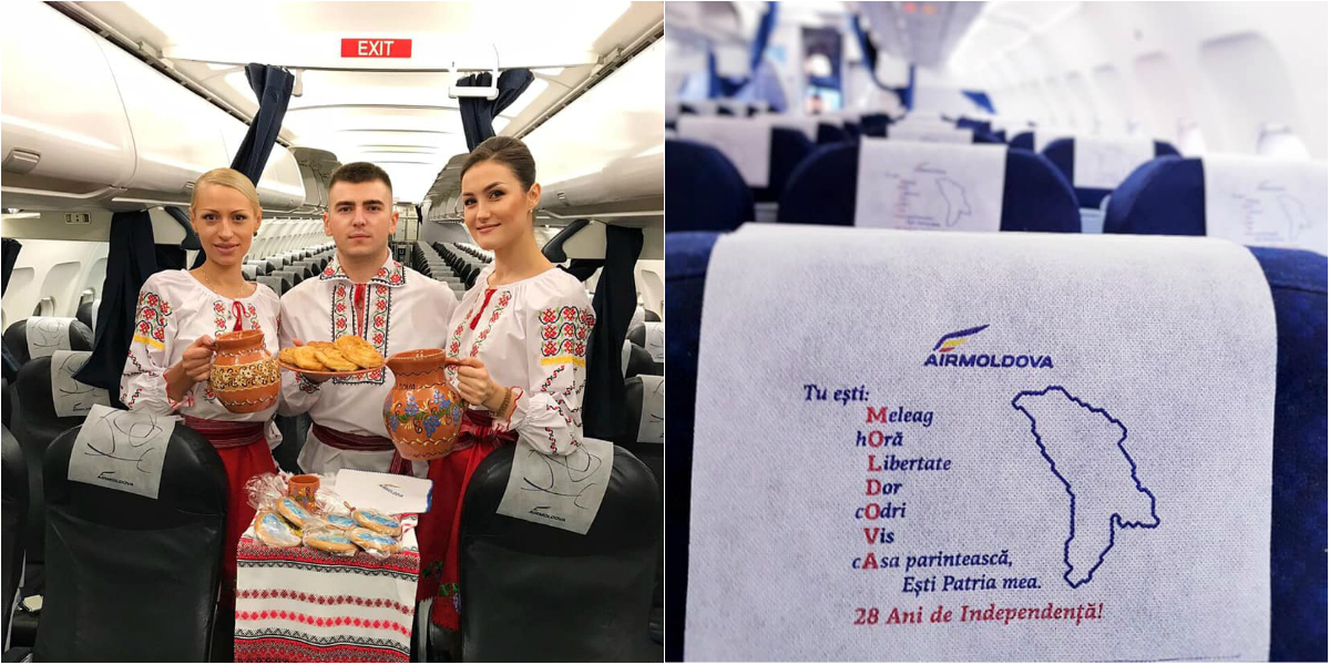 Până că și avioanele „au îmbrăcat” azi straie de sărbătoare. Port tradițional moldovenesc, cuvinte patriotice și gustări făcute ca la…