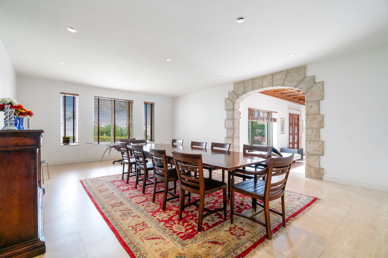 Casa oferită la vânzare are 9 dormitoare și piscină, se află la câteva minute de plaja Miami și este una dintre puținele case din zonă care au ieșire la apă.