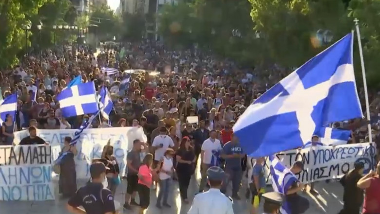 Mai mult de 5000 de greci au protestat în seara de 14 iulie, în centrul Atenei față de noile restricții anunțate de Guvern, precum vaccinarea obligatorie a lucrătorilor din anumite sectoare, informează Digi24.