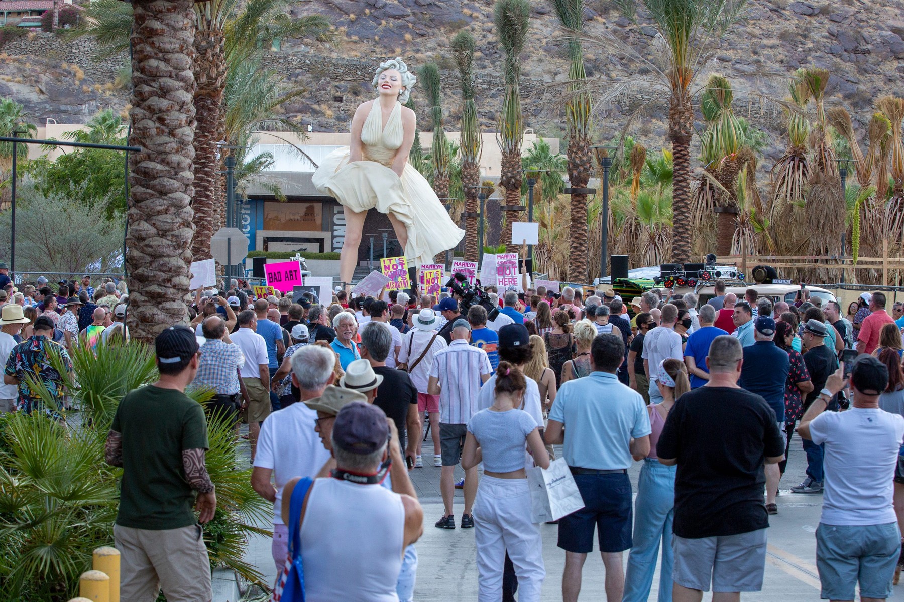 O statuie recent inaugurată lângă Muzeul de Artă Palm Springs din Califonrnia, SUA, a devenit ținta criticilor și protestatarilor. Monumentul o reprezintă pe Marilyn Monroe și este considerat de activiști „hipersexualizat”.