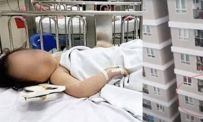 O fetiță care a căzut de la balconul unui bloc cu 12 etaje din Vietnam a fost salvată de un trecător. Bărbatul este curier și efectua o livrare atunci când a văzut copila care se cațără pe balustradă.