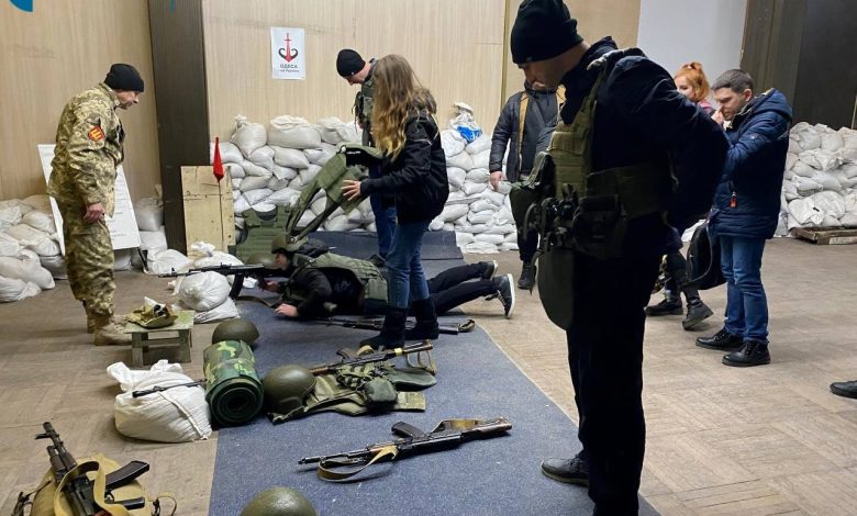 Orașul ucrainean Odesa se pregătește pentru contracararea unui atac militar din partea Rusiei. Astfel, voluntarii sunt antrenați cum să folosească armele de foc.