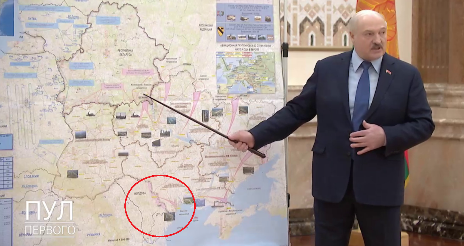 Președintele bielorus Alexandr Lukașenko le-a prezentat marți generalilor săi o hartă care prezintă direcții de atac asupra Ucrainei care este divizată în patru părți, aceasta arătând și mișcări de trupe în direcția Transnistriei, scrie hotnews.ro.
