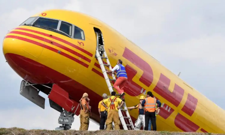 DHL, parte a Deutsche Post AG, a declarat că echipajul nu a fost rănit, dar un membru este supus unei examinări medicale ca măsură de precauție.