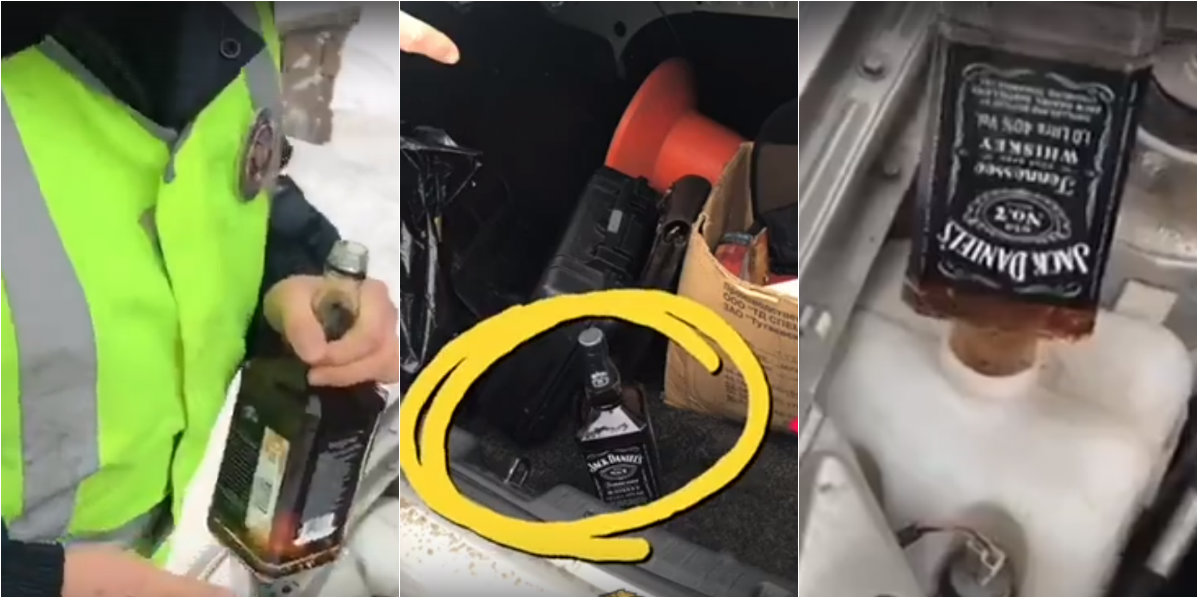 Clipul video a fost încărcat pe rețeaua de socializare VKontakte din Rusia, iar în imagini bărbatul îmbrăcat în uniformă ia sticla de whisky din portbagajul mașinii și o toarnă în locul destinat lichidului de parbriz, explicând că nu avea lichid la îndemână, relatează The Moscow Times.