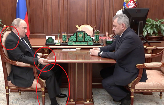 Recent a fost publicat un clip video cu preşedintele rus Vladimir Putin aflat într-o ipostază neobişnuită. El strânge masa cu mâinile în timpul unei întâlniri televizate cu ministrul Apărării Serghei Şoigu.