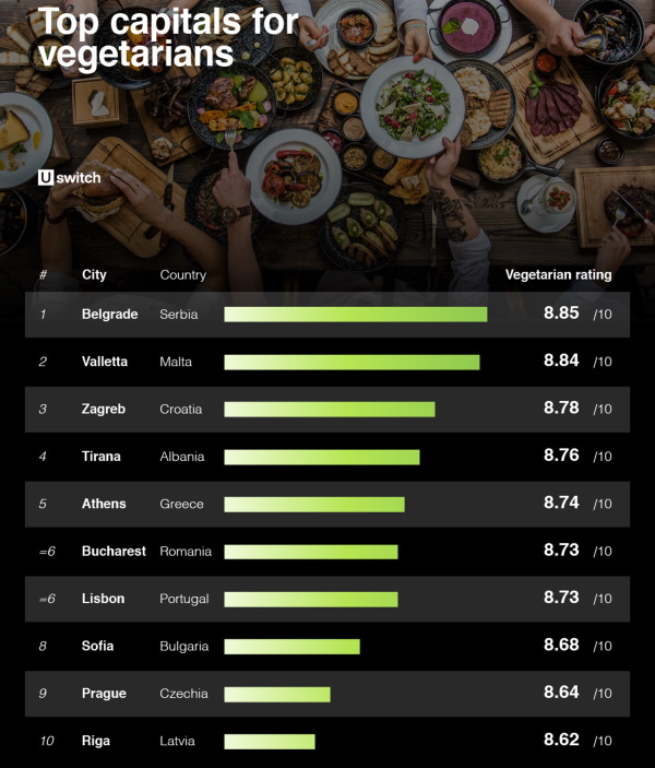 Clasată drept cea mai bună capitală pentru restaurantele vegetariene (8,85 din 10) şi pentru pub-uri (9.05 din 10), Belgrad (Serbia) este şi a doua cea mai bună capitală pentru gurmanzi, cu un scor general de 83,06/100.