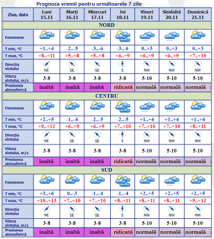 Iată prognoza meteo pentru următoarele zile în nordul, centrul și sudul Republicii Moldova: