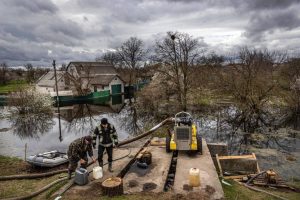 Sătenii din Demydiv, la nord de Kiev, au aplicat o tactică neobişnuită pentru a împiedica un asalt al tancurilor ruseşti asupra capitalei Ucrainei. Ei au decis să inunde satul şi zonele din vecinătate pentru a-i opri pe ruşi.