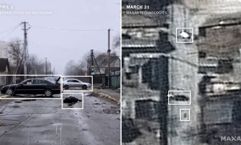 Imaginile, înregistrate de un satelit al companiei de specialitate Maxar Technologies, datează de pe 11 martie, dată la care trupele ruse încă ocupau oraşul, şi arată 11 cadavre aflate la sol, toate pe aceeaşi stradă, numită Iablonska.