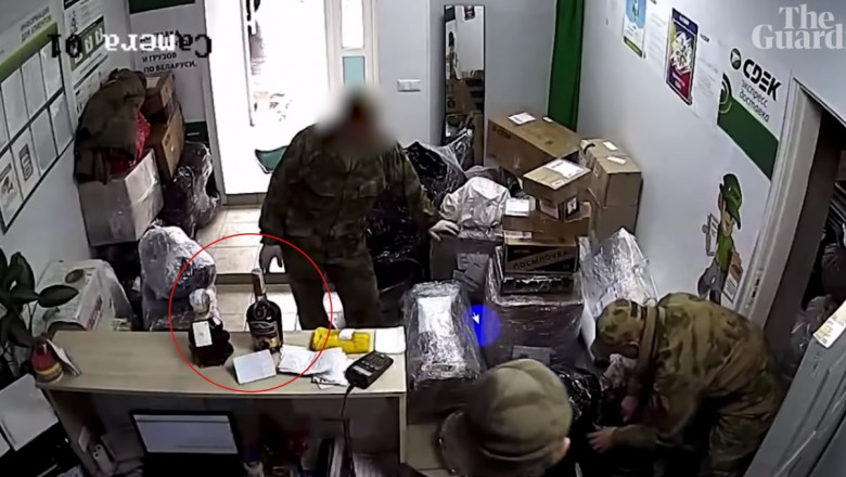Într-un material video obținut de The Guardian, pot fi observați soldați ruși care împachetează îmbrăcăminte, televizoare, unelte, echipamente de pescuit, baterii auto și alte articole de uz casnic în pachete înainte de a fi trimise până în Siberia sau chiar în orașele de pe coasta estică a Rusiei.