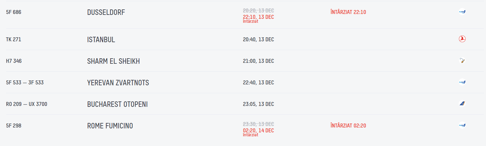 Ceața a dat peste cap traficul aerian prin Aeroportul Internațional Chișinău. Astfel, mai multe curse au venit cu întârziere, una a fost anulată, iar cursele Chișinău-Istanbul, Chișinău-Londra, Chișinău-Düsseldorf au suferit schimbări în graficul de zbor.