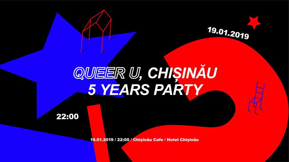 22:00. Queer U, Chișinău: 5Years Party. Queer U, Chișinău te invită la petrecerea de închidere a festivalului de film „Queer Voices”, dedicată celei de-a 5-a aniversări a inițiativei locale. Procesul infinit al (s)explorării de sine și extinderii limitelor de gen va avea loc sub ritmurile oferite de DJ lineup și alții.