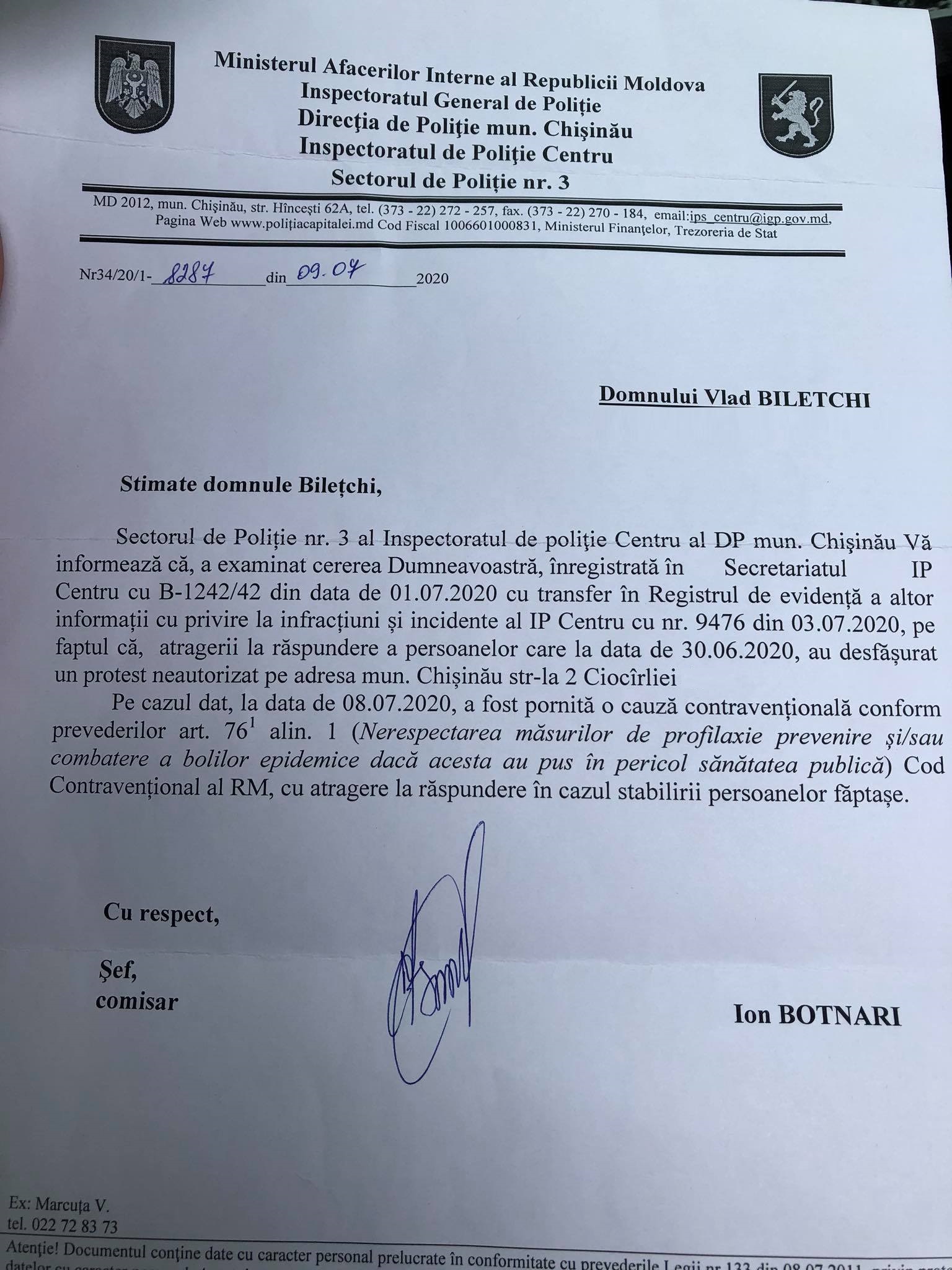 „Vrem ca legea să nu mai funcţioneze selectiv. Unioniştii au fost sancţionaţi pe nedrept atunci când au întâmpinat cele 20 de camioane cu ajutoare umanitare din România şi vrem să vedem că Poliţia lucrează în cazul socialiştilor, care au încălcat flagrant legea şi au ieşit în număr mare la manifestaţii. Sperăm că vedem, într-adevăr, rezultate concrete, iar cei care au sfidat legea să fie sancţionaţi pentru nerespectarea măsurilor epidemiologice în perioada de pandemie”, declară Vlad Bileţchi.