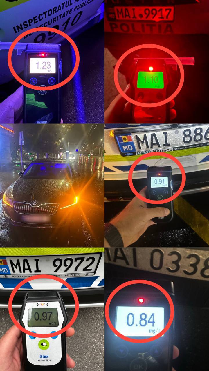 Printre cele mai grave cazuri se numără un bărbat de 34 de ani din satul Bălășești, raionul Sîngerei, prins la volanul unui BMW cu o concentrație de 1,23 mg/l alcool în aerul expirat, dar și un bărbat din satul Ermoclia, raionul Ștefan-Vodă, care conducea un ATV având 1,10 mg/l.