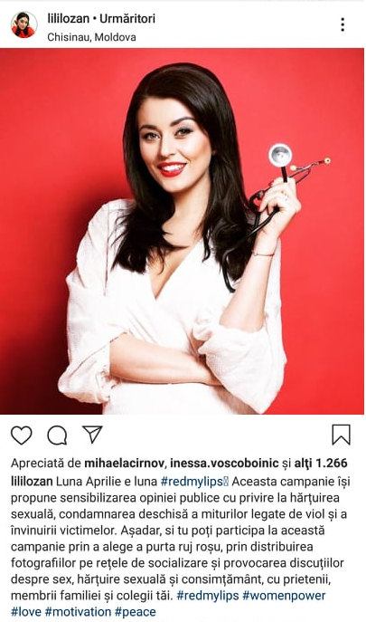 Campania Red My Lips, organizată la nivel mondial anual în luna aprilie, devine tot mai vizibilă și în Moldova. Zeci de persoane, dar mai ales femei, au ales să poarte roșu, fie pe buze, fie în vestimentație, pentru a spune astfel „Stop” fenomenului de violență sexuală.