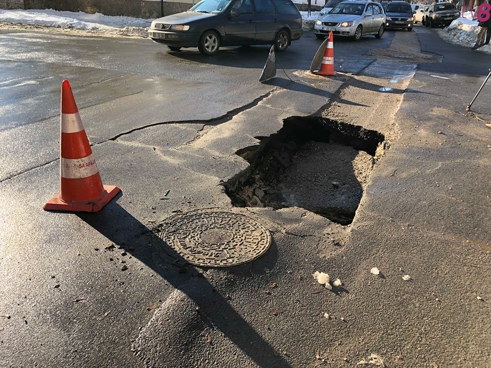 Șoferii care circulă pe strada Sfatul Țării din sectorul Buiucani al capitalei se simt ca la competițiile cu obstacole, asta deoarece chiar pe mijlocul drumului s-a format o groapă imensă după ce o bucată de asfalt s-a surpat.