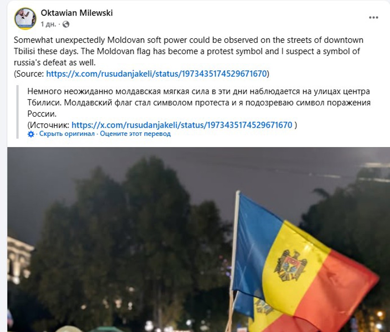 În context, și cercetătorul independent din Polonia, Oktawian Milewski, a menționat într-o postare pe Facebook că, „în mod oarecum neașteptat, puterea Moldovei poate fi observată pe străzile din centrul orașului Tbilisi în aceste zile”.