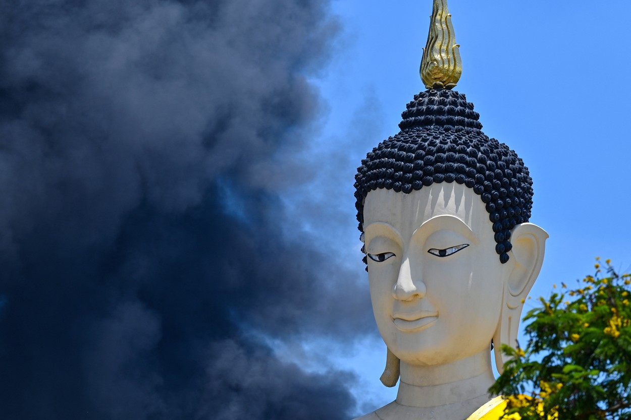 Cu toate acestea, o coloană de fum negru continua să se ridice la miezul zilei de luni deasupra fabricii, fiind vizibilă până în centrul Bangkokului, la o distanţă de 35 km.