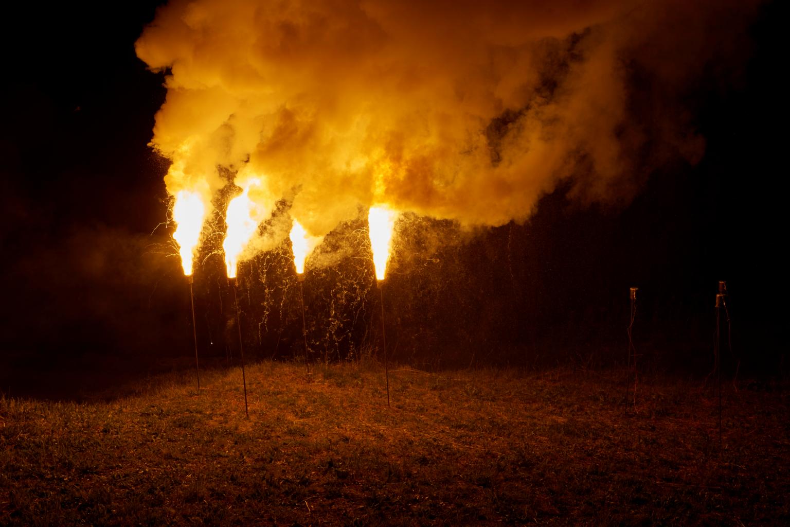 Mai multe lanțuri muntoase au fost iluminate cu mai mult de 100 de kilograme de pulbere de magneziu, aprinse în timpul evenimentului, relatează Reuters. „Focul” a fost văzut la o distanță de circa 20 de kilometri.