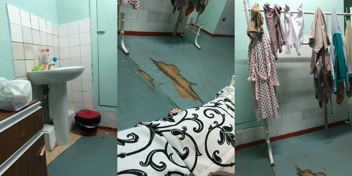 Femeia a publicat mai multe fotografii în care se observă podeaua dărăpănată, paturile vechi și starea, pe alocuri, insalubră a salonului în care a fost internată.